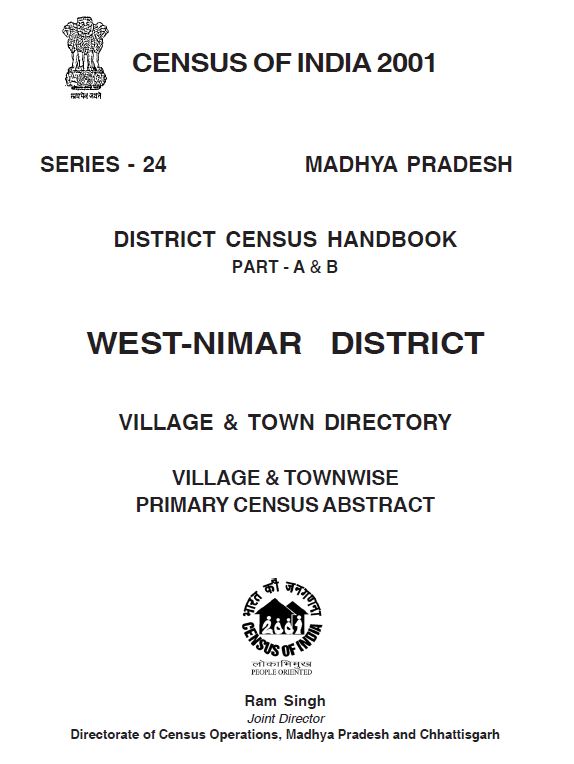 Census of India 2001 - Series 24 - Madhya Pradesh - District Census Handbook, Part A & B - West-Nimar