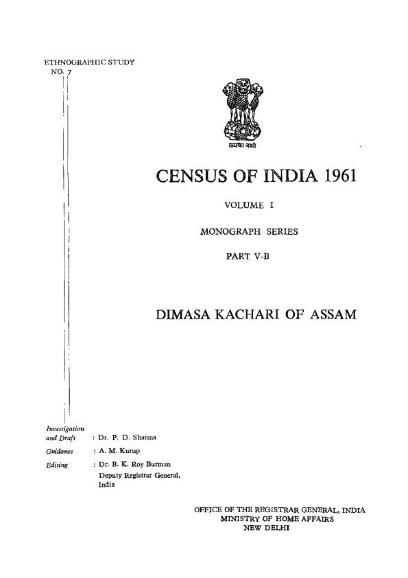 Monograph Series, Part V-B, Vol-I, Assam - Census 1961