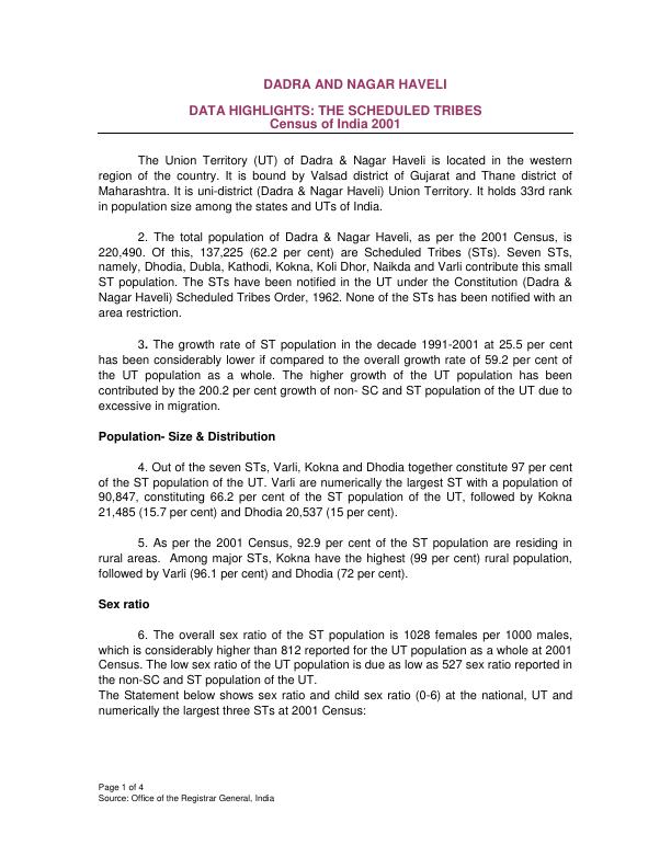 Census of India 2001, Data Highlights - The Scheduled Tribes, Dadra and Nagar Haveli