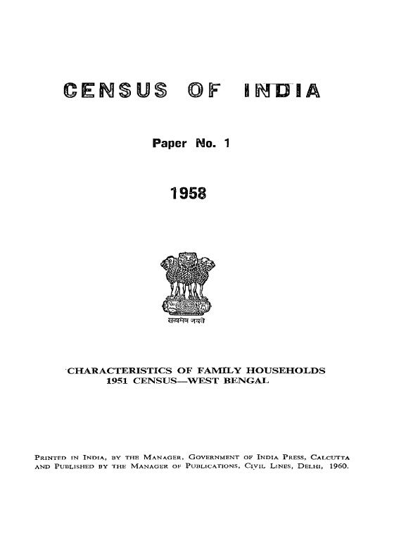 Characteristics of Family Households 1951 Census-West Bengal - Census 1951