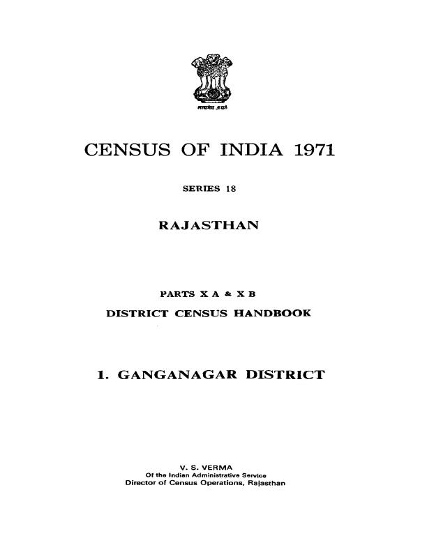 District Census Handbook, 1-Ganganagar, Part X A & X B, Series-18, Rajasthan - Census 1971