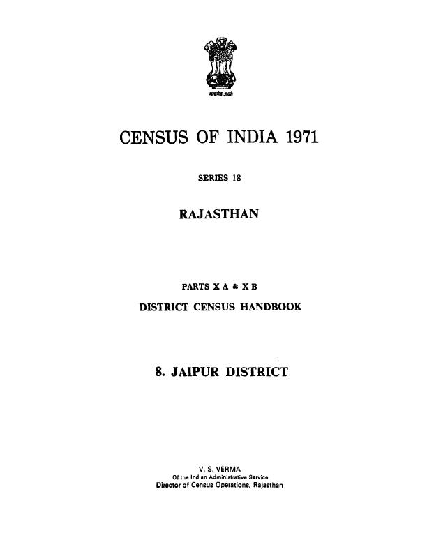 District Census Handbook, 8-Jaipur, Part X A & X B, Series-18, Rajasthan - Census 1971