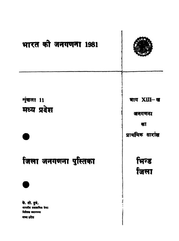 District Census Handbook, Bhind, Part XIII-B, Series-11 - Census 1981