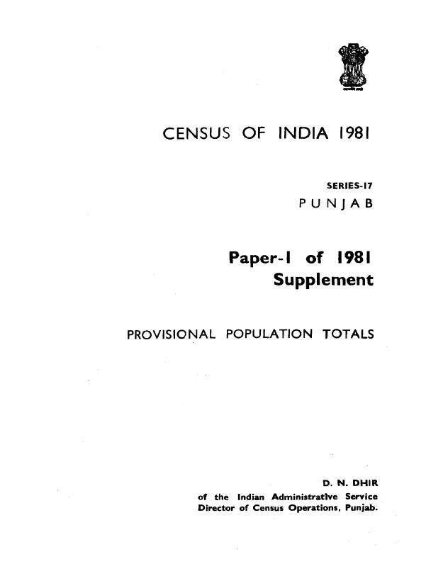 Provisional Population Totals, Series-17, Punjab - Census 1981
