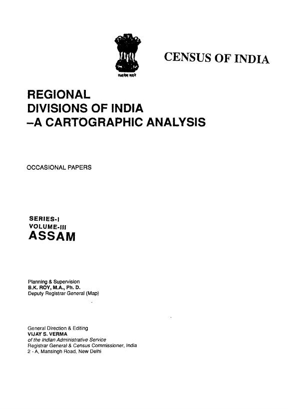 Regional Divisions of India A Cartographic Analysis, Vol-III, Series-I, Assam - Census 1981
