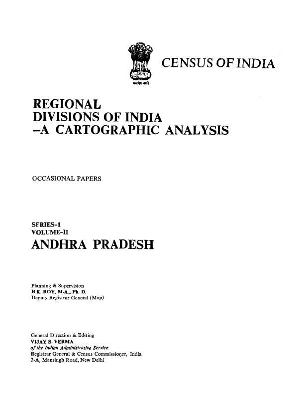 Regional Divisions of India A Cartographic Analysis, Vol-II, Series-I - Census 1981