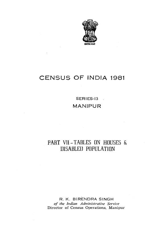 Tables on Houses & Disabled Population, Part VII, Series-13, Manipur - Census 1981