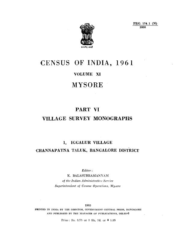 Village Survey Monographs, Iggalur Village, 1, Part VI, Vol-XI - Census 1961