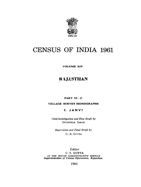 Village Survey Monographs, 1 Janvi, Part VI-C, Vol-XIV, Rajasthan - Census 1961