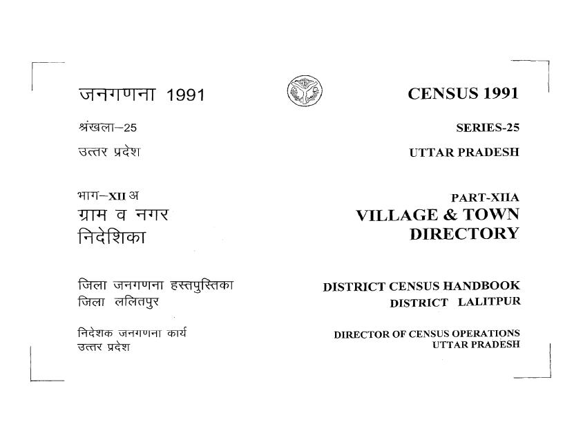 District Census Handbook, Lalitpur, Part-XII-A, Series-25, Uttar Pradesh - Census 1991
