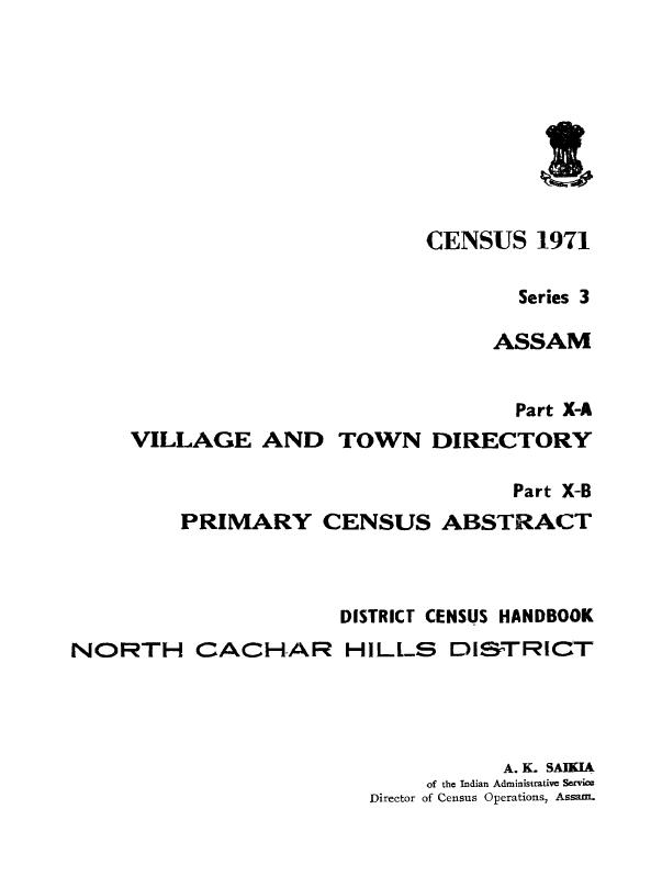 Village and Town Directory Primary Census Abstract, North Cachar Hills, Part X-A, X-B, Series-3, Assam - Census 1971