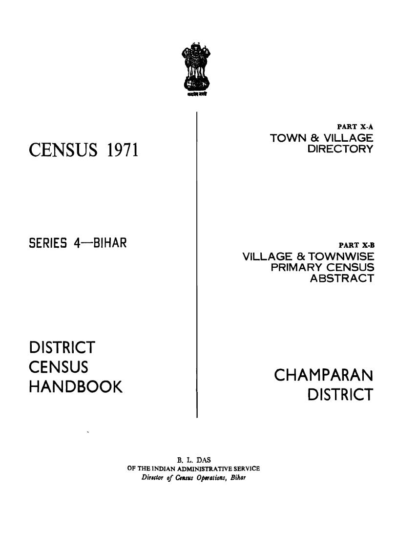 Village & Townwise Primary Census Abstract, Part X-B, Champaran District, Series-4, Bihar - Census 1971