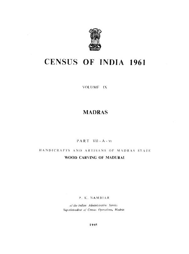 Handicrafts and Artisans of Madras State, Wood Carving of Madurai, Part VII-A-VI, Vol-IX - Census 1961