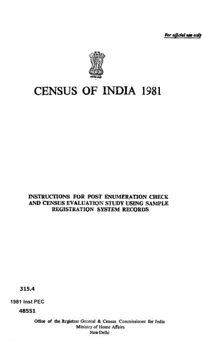 Instructions for Post Enumeration Check and Census Evaluation Study Using Sample Registration System Records - Census 1981