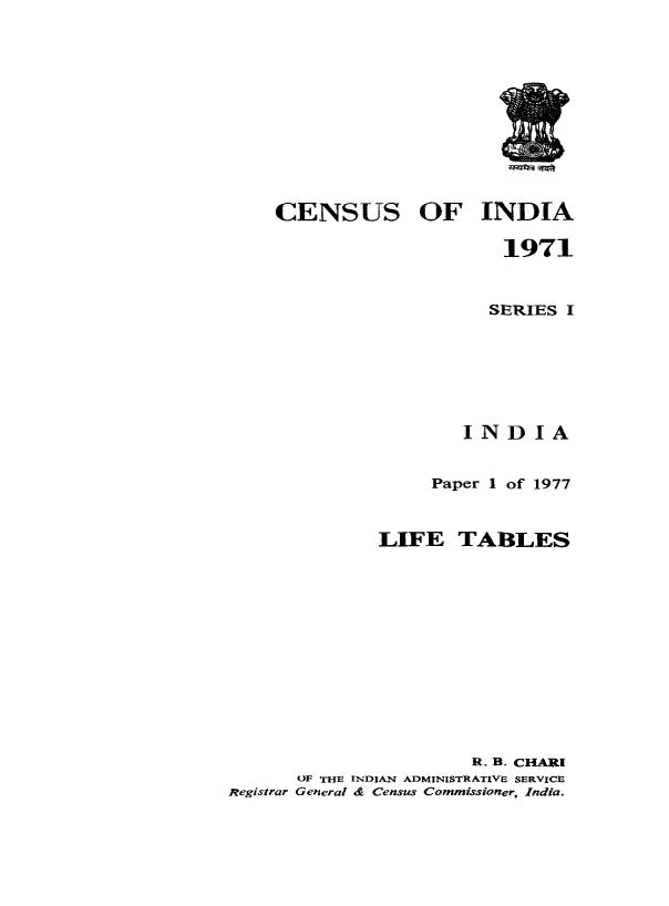 Life Tables, Series I, Paper 1 of 1977, India - Census 1971