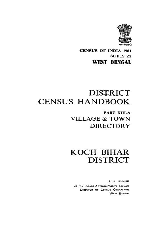 Village & Town Directory, Koch Bihar, Part XIII-A, Series-23, West Bengal - Census 1981