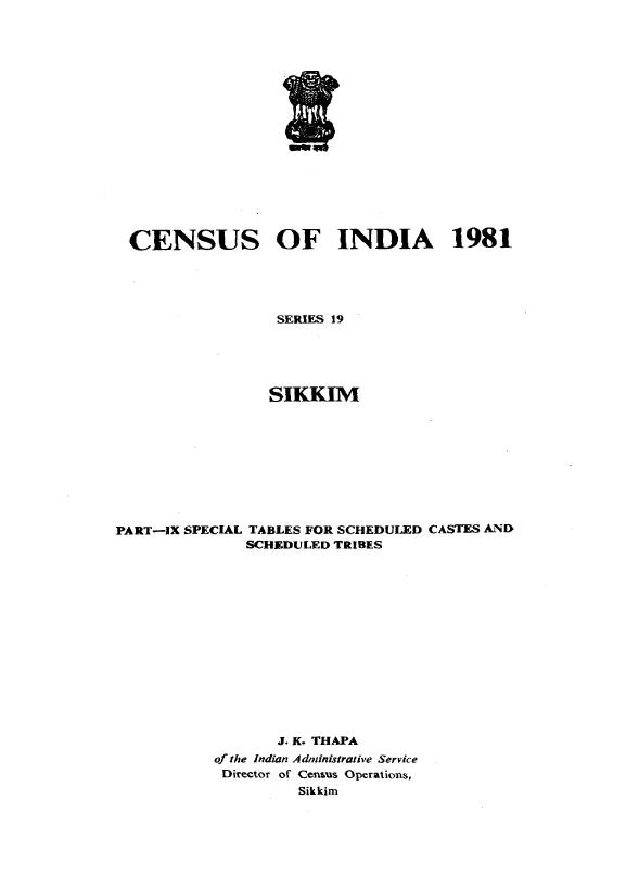 Special Tables For Scheduled Castes and Scheduled Tribes, Part IX, Series-19, Sikkim - Census 1981