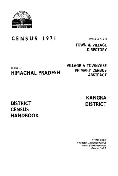 Village & Town wise Primary Census Abstract, Kangra, Part X-A & B, Series-7, Himachal Pradesh - Census 1971