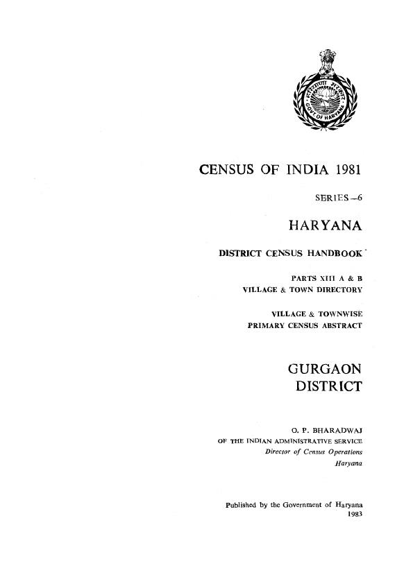 Village & Town wise Primary Census Abstract, Gurgaon, Part XIII A & B, Series-6, Haryana - Census 1981
