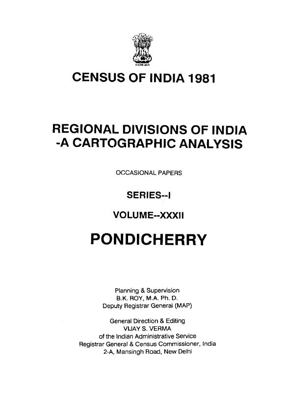 Regional Divisions of India A Cartographic Analysis, Vol-XXXII, Series-1 - Census 1981