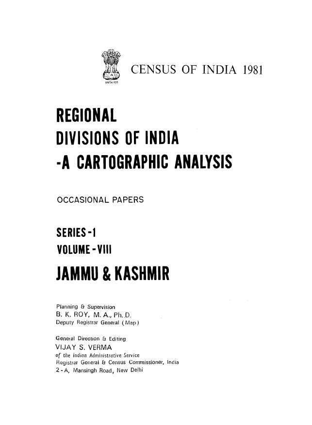 Regional Division of India A Cartographic Analysis, Vol-VIII, Series-I - Census 1981