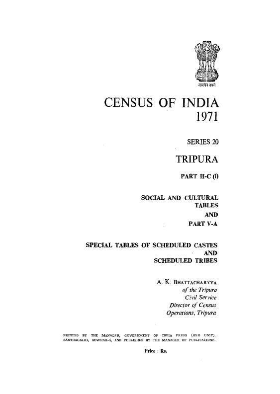 Social and Cultural Tables and Special Tables of Scheduled Castes and Scheduled Tribes, Part II-C (i), Part V-A Series-20, Tripura - Census 1971