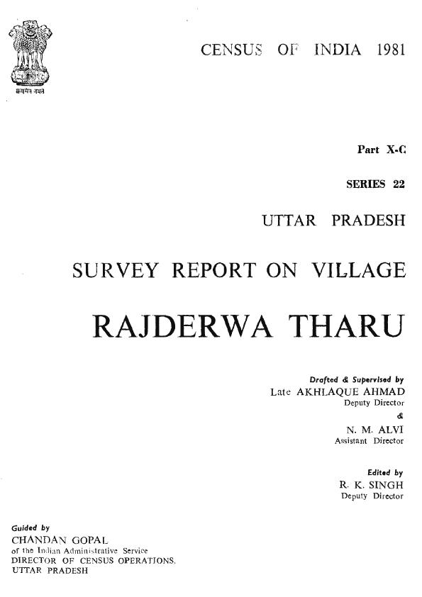 Survey Report on Village Rajderwa Tharu, Part X-C, Series-22, Uttar Pradesh - Census 1981