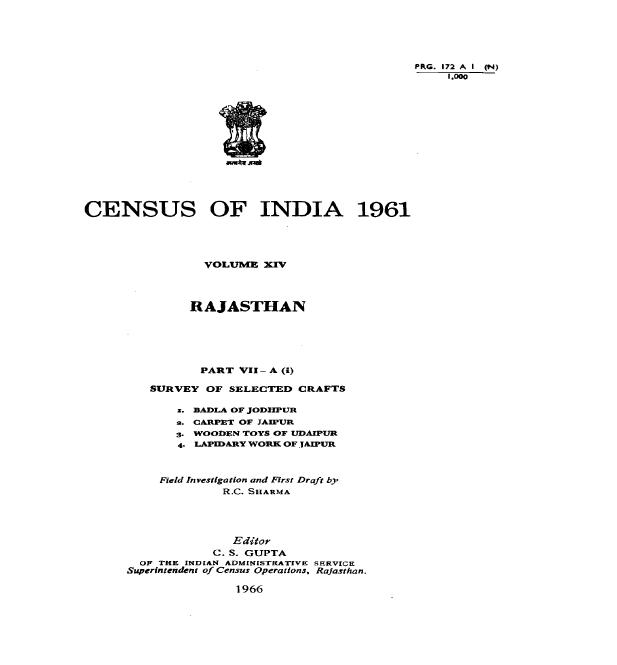 Survey of Selected Crafts, Part XIV, Vol-XIV, Rajasthan - Census 1961
