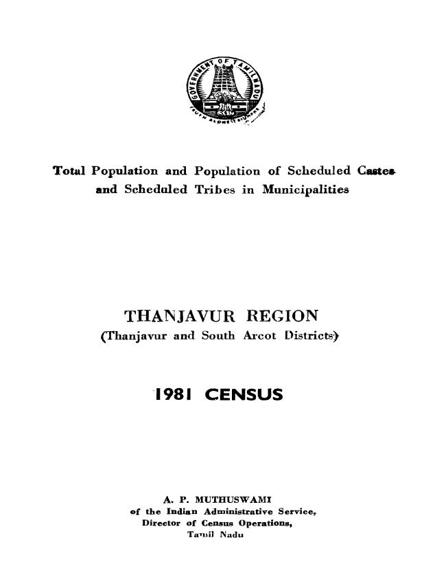 Total Population and Population of Scheduled Castes and Scheduled Tribes in Municipalities, Thanjavur Region Series 20 - Census 1981