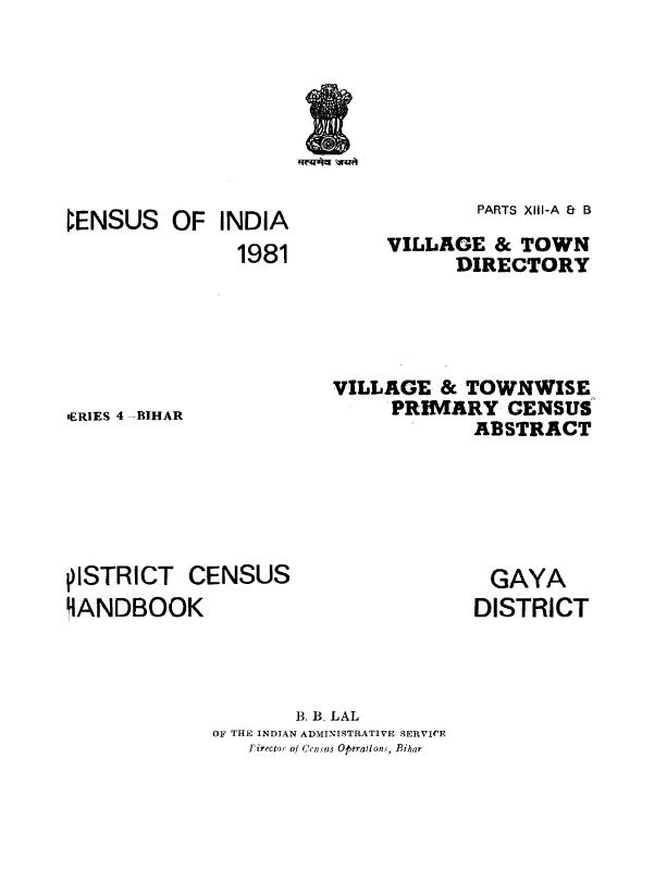 Village & Town Directory, Village & Town wise Primary Census Abstract, Gaya Part XIII - Census 1981