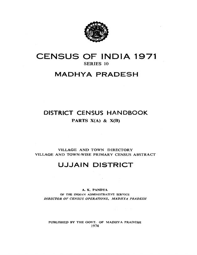 District Census Handbook, Ujjain, Part X (A) & X(B), Series-10 - Census 1971