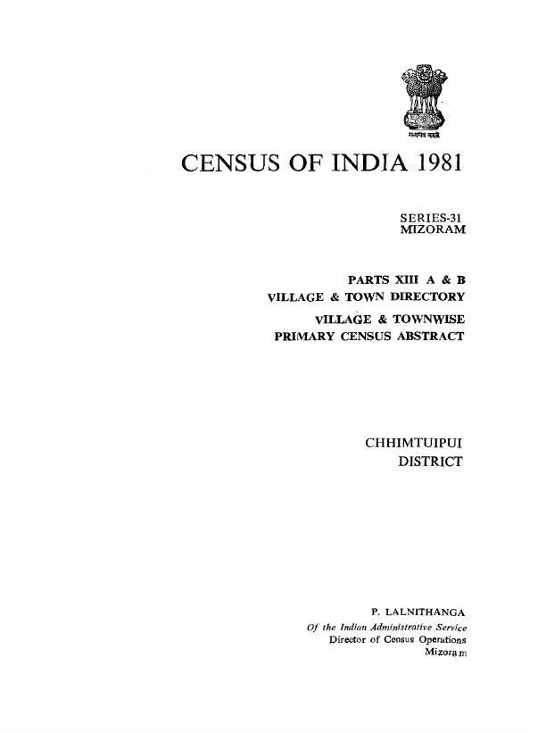 District Census Handbook, Chhimtuipui, Part XIII-A & B, Series-31, Mizoram - Census 1981