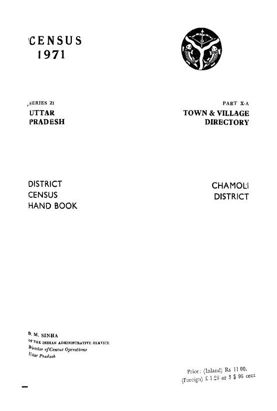 District Census Handbook, Chamoli, Part X-A, Series-21, Uttar Pradesh - Census 1971