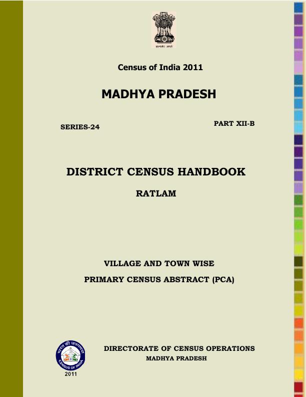 Census of India 2011 - Madhya Pradesh - Series 24 - Part XII B - District Census Handbook, Ratlam