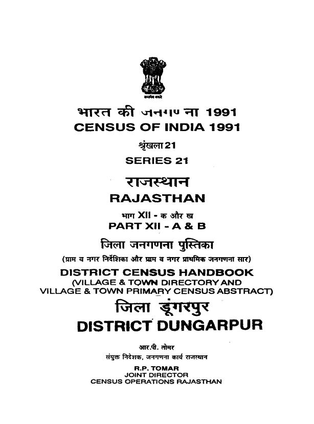 District Census Handbook, Dungarpur, Part XII-A & B, Series-21, Rajasthan - Census 1991