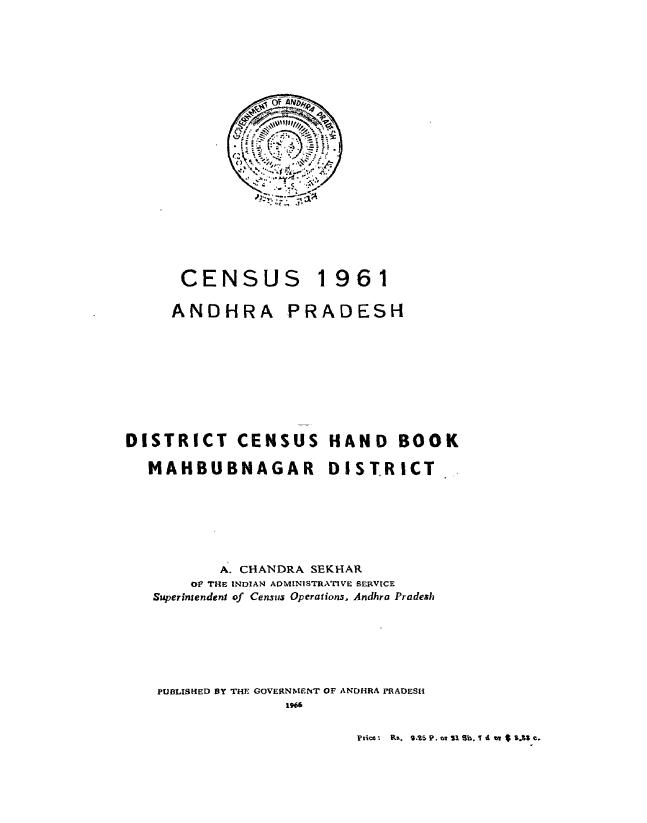 District Census Handbook, Mahbubnagar, 1961 - Census 1961