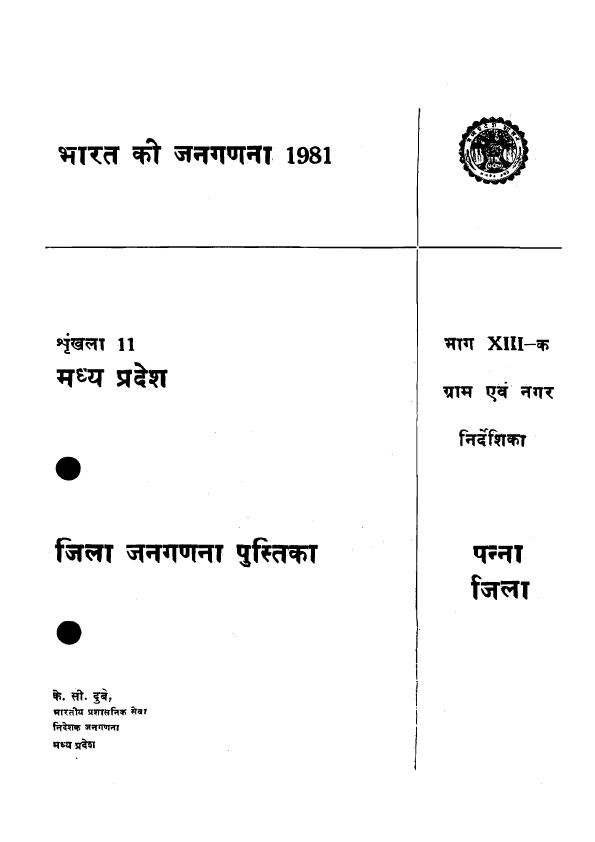 District Census Handbook, Panna, Part XIII-A, Series-11 - Census 1981