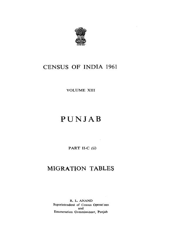 Migration Tables, Part II-C (ii), Vol-XIII, Punjab - Census 1961
