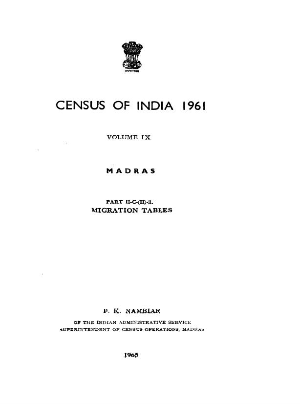 Madras- Migration Tables, Part II-C-(II)-ii, Vol-IX - Census 1961