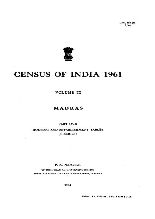 Madras- Housing and Establishment Tables, (E-Series) Part IV-B, Vol-IX - Census 1961