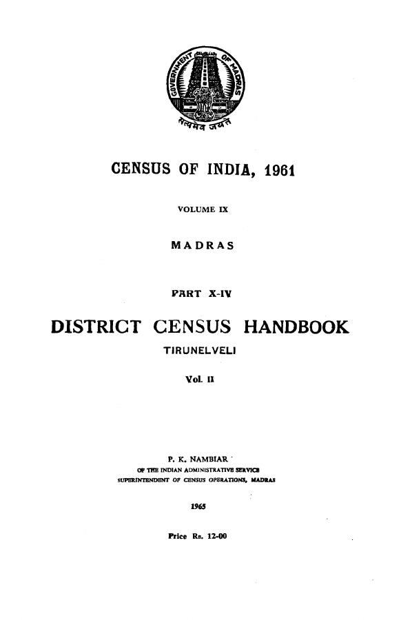 Madras- District Census Handbook, Tirunelveli, Part X-IV, Vol-II, Vol-IX - Census 1961