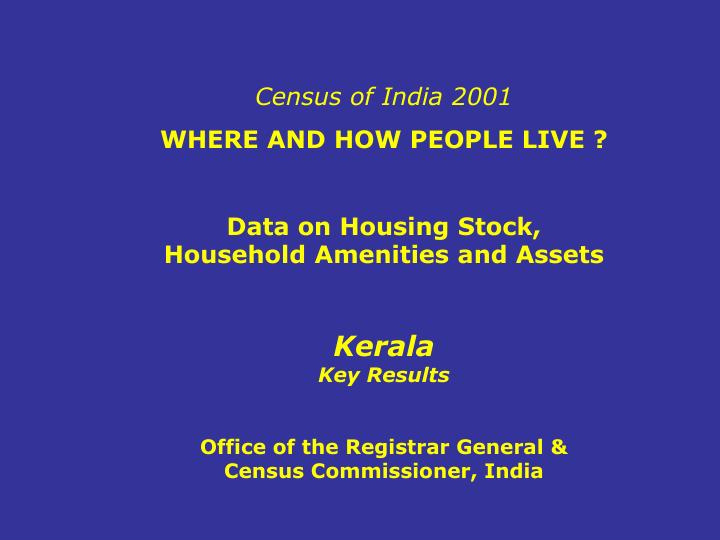 Census of India 2001 - Where and How People Live? Data on Housing Stock, Household Amenities and Assets - Kerala Key Results