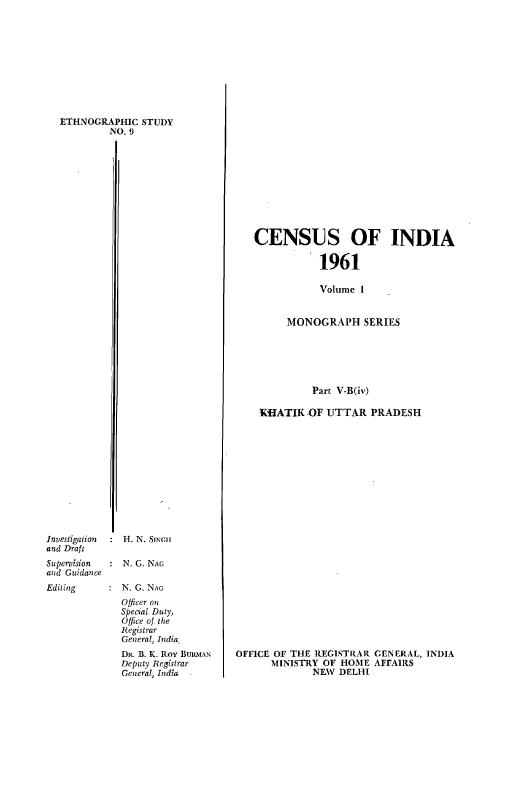 Monograph Series, Khatik of Uttar Pradesh, Part V-B (iv), Vol-I, Uttar Pradesh - Census 1961