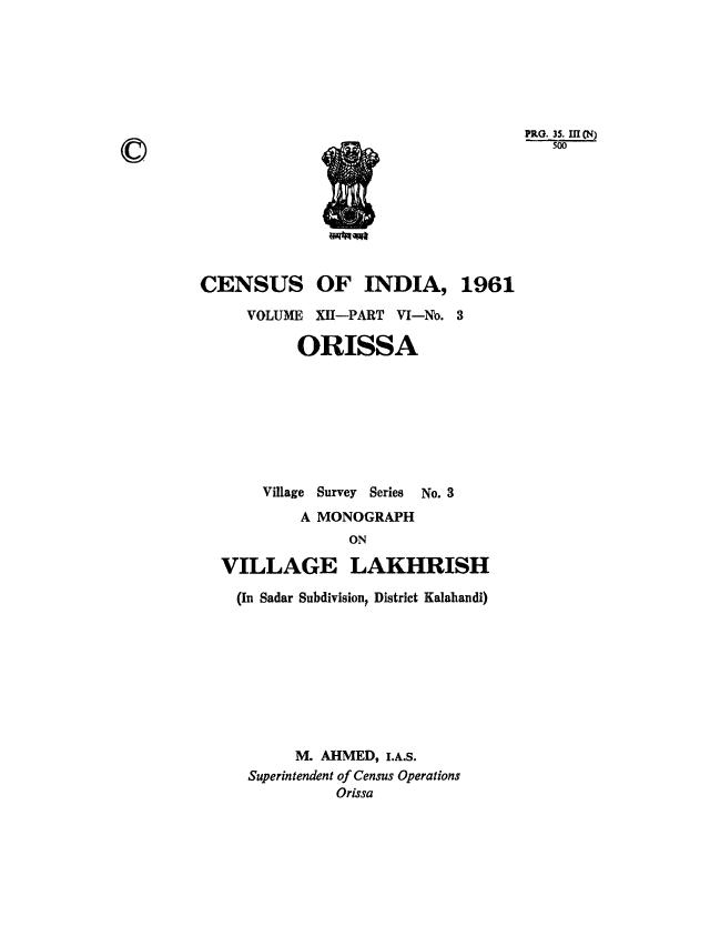 Monograph on Village Lakhrish, Part-VI-Volume-XII, Orissa - Census 1961