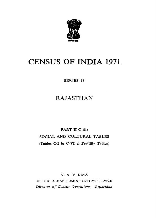 Social and Cultural Tables, Part II-C (ii), Series-18, Rajasthan - Census 1971