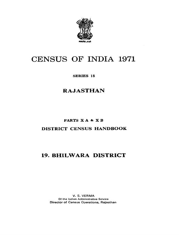 District Census Handbook, 19-Bhilwara, Part X A & X B, Series-18, Rajasthan - Census 1971