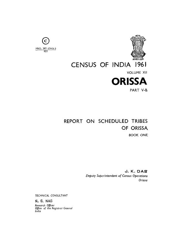 Report on Scheduled Tribes of Orissa, Part-V-B, Volume-XII, Orissa - Census 1961