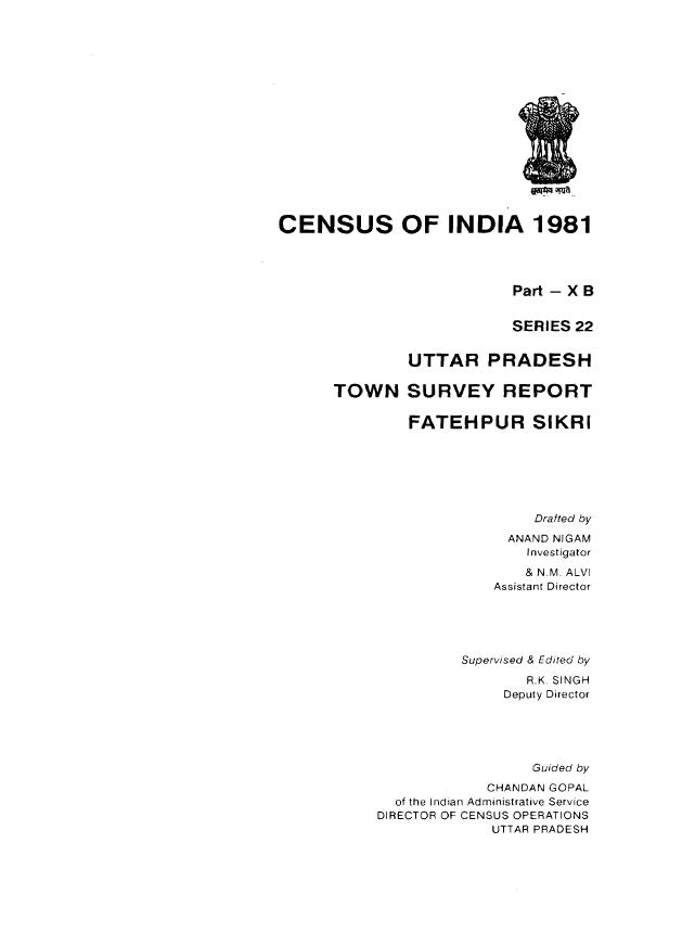 Town Survey Report Fatehpur Sikri, Part-XB, Series-22, Uttar Pradesh - Census 1981