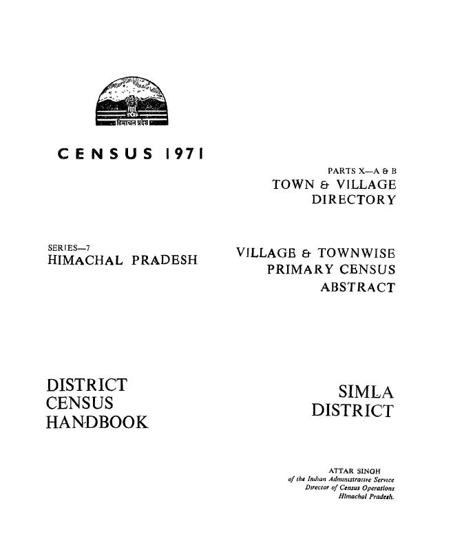 Village & Townwise Primary Census Abstract, Simla, Part-X-A & B, Series-7 , Himachal Pradesh - Census 1971