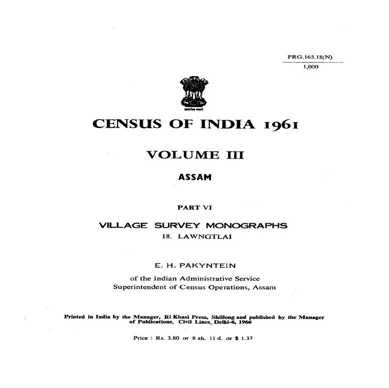 Village Survey Monographs, 18 Lawngtlai, Part VI, Vol-III, Assam - Census 1961